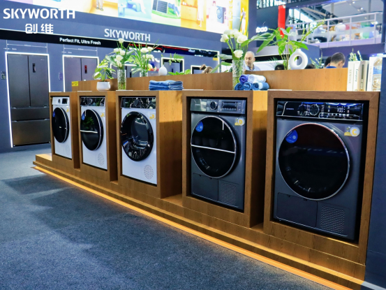 智慧生活:全品类家电构筑完整生态 除了作为智慧家庭中枢的电视产品,创维此次展出的全品类家电同样精彩纷呈,共同构筑了完整的智慧生活解决方案。创维冰箱冷柜、洗衣机、干衣机与洗碗机等明星产品齐聚展台。