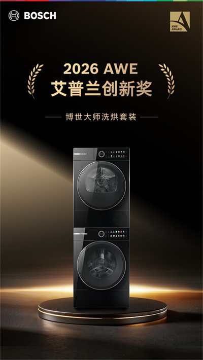 3月12日,2026年度中国家电及消费电子博览会AWE艾普兰奖颁奖典礼在上海圆满落下帷幕。经过组委会专家小组严格的多轮严格选拔,博世大师套系洗烘套装与博世V20 Pro焕彩版洗碗机皆荣获艾普兰创新奖。作为全球智慧生活领域的“奥斯卡”,艾普兰奖是当今家电与消费电子领域具有公信力的产品评选表彰活动,旨在对年度行业创新成果进行表彰。这两项殊荣,不仅是对博世家电硬核实力的权威认证,更是全新品牌宣言——“恒久品质,致用朝夕”的坚实底气。